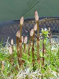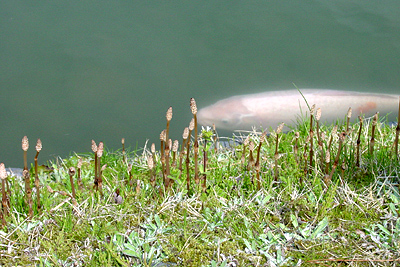 2005年3月29日:まさに春、土手のツクシに所作無げに泳ぐ鯉。