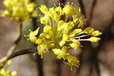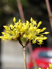 2006年3月15日:昭和区隼人池のヒガンサクラと南山教会前のサンシュユ。いずれも満開の見頃です。