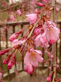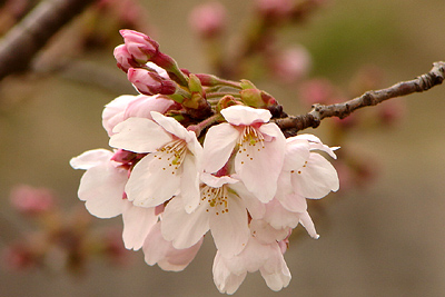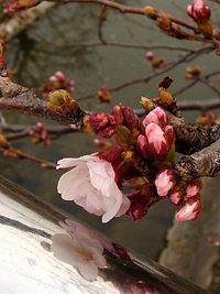 2006年3月28日:開花宣言を受け、山崎川の様子を見にゆきました。川風が冷えるのかソメイヨシノはチラホラです。この調子だと満開は4月4〜6日でしょうか。燃えるような赤芽、可憐なヒメコブシ、若やいだシダレと旬が重なって困惑気味の瑞穂運動場近辺です。