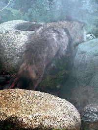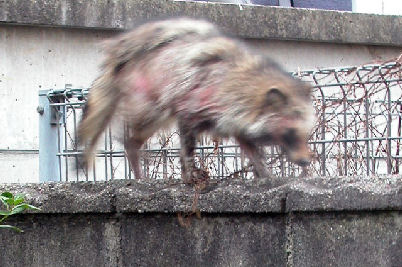 2007年1月2日:新年の珍事。昭和区川名町に「たぬき」。庭の手水鉢に水を飲みに来た、あわてて