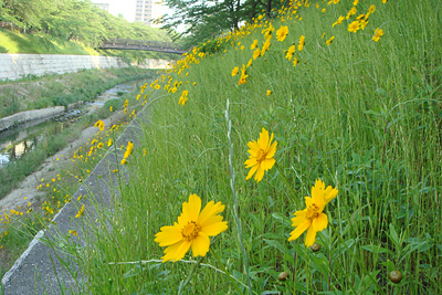2007年6月1日:山崎川鼎小橋周辺でキンケイ菊がきれいです。アジサイはまだまだハシリです。