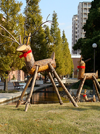 2007年11月21日:西区ノリタケの森の煙突に今年もサンタさんが登場です。なんだかいきなり寒くなった様ですが、気が付けばサンタの季節なのです。