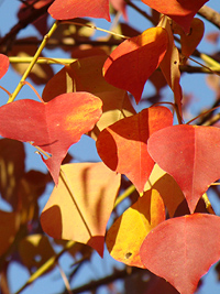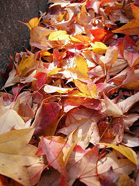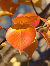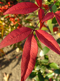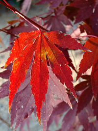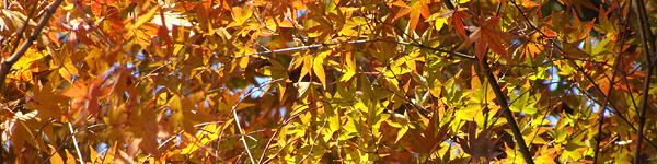 2007年12月1日:八事山で見つけた紅葉です。今年の紅葉はとても豪華で美しい。モミジやサクラの赤味が強く、例年より主張が強いように思われ、とても賑やかです。イチョウやケヤキの黄も相俟ってふかふかの散歩道を楽しめます。