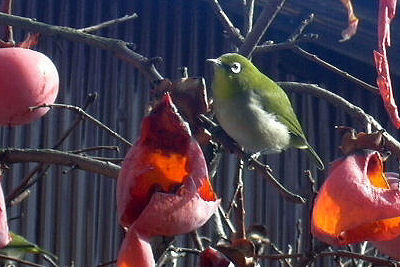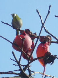 2008年1月16日:柿が年を越えて木に付いている事はこの20年来なく、今年が初めてです。