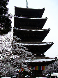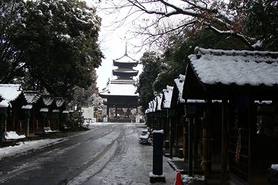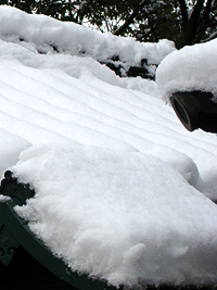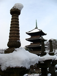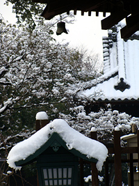 2008年2月10日:前日からの大雪で市内は大興奮です。今朝は早速、八事興正寺へでかけました。止みかけ時の雨を心配しましたが結構な雪景色が残っていました。境内は坊さん総動員で雪かきでおおわらわでした。