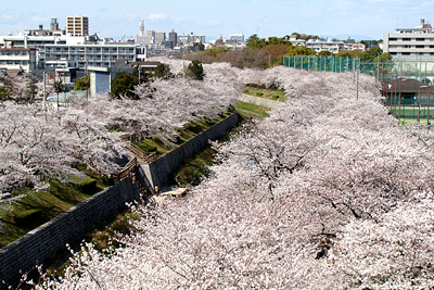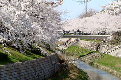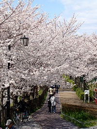 2008年4月1日:ご存知・山崎川の桜です。午前中の冷たい強風にもめげず大勢の見物客で大賑わい。今年のさくらは小粒ながら量が多いような気がします。