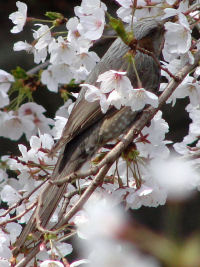 2008年4月2日:ヒヨドリがさくらの蜜を! 山崎川上流にて