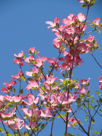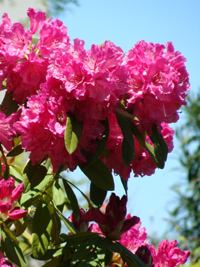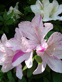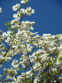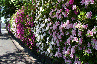 日:2週間早目の五月晴れです。何といっても色とりどりのツツジの生垣とハナミズキ・シャクヤク・ボタン・八重サクラ、足元にはスミレと春爛漫。昭和区