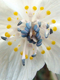 2009年2月17日:セツブンソウが咲いたという知らせを聞いてさっそく秘密の花園へ。今年は1月中旬から暖かく、例年より10日以上早いとのこと。