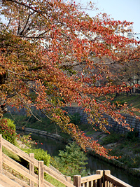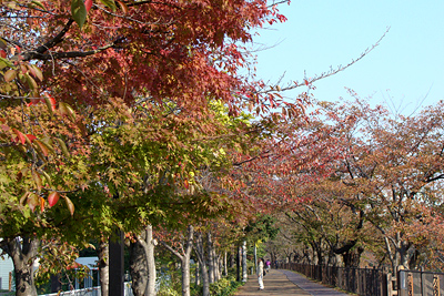 2009年11月1日:素晴らしい秋の朝。山崎川周辺の色模様です。