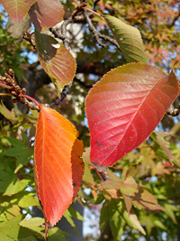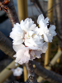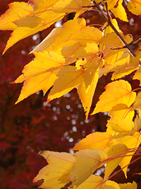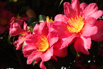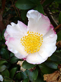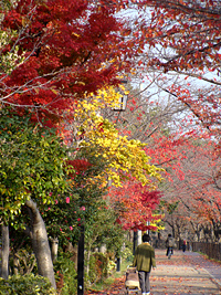 2009年12月1日:サザンカの季節です。嵐の少ない穏やかな今年の散歩道は紅葉、黄葉で賑やかです。グラウンドの四季桜も健気に小さな花を咲かせていました。