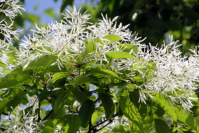 日:五月晴れ。近所の小公園で見つけたナンジャモンジャが賑やかです。