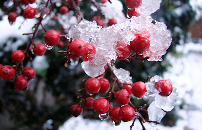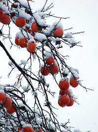 2011年12月26日 昨日夕方からの雪、名古屋の積雪8センチ。ナンテンと柿。