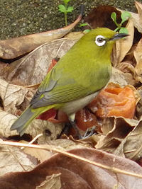 平成26年2月3日 昭和区でメジロ、ムクドリ、ヒヨドリ たくさん残っていた柿も食べつくした。