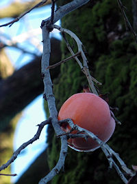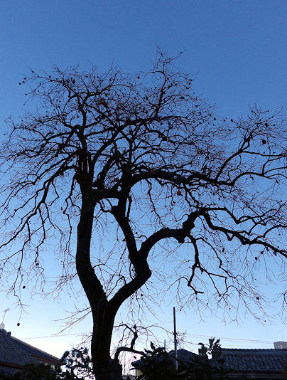 今年の冬は あたたかい。柿の大木に残っていた実もほとんどなくなってしまった。
