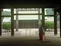 巫女さんが、縞をつけていました。