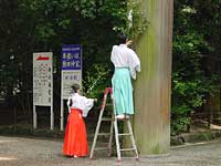 疫病退散を願う「京都祇園まつり」で有名な八坂神社のご祭神と同じ素盞嗚尊(すさのおのみこと)をお祀りし、6月5日を祭日として南新宮社祭を行っています。当神宮唯一の丹塗りの社殿です。