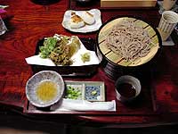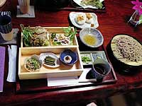 | 昼食は「こころ音」のそばをいただきました。5月初めのオープンですが周囲の町並みに溶け込んだ店作りで、落ち着いた雰囲気で自慢の十割そばを食べさせます。付け合せのゼンマイ、ワラビと山菜のてんぷらは逸品でした。 |