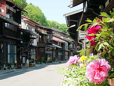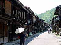 | 2003年5月29日:奈良井宿ではJR奈良井駅前に車を置き、街道を散策します。久方の晴れ間、まぶしいくらいの新緑の中、瞬間的にタイムスリップして、猥雑でひなびた街道体験が楽しめます。 |