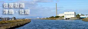 佐屋の交差点には、佐屋三里の渡し跡となる。現在は川は流れていないので、渡し跡の面影はない。この付近には「左さや舟場道」「佐屋代官所址」「佐屋三里之趾」の碑が建てられている |
