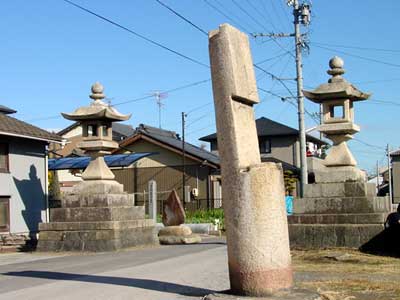 埋田の追分:日光川を渡ると埋田の追分となる。現在この地に残されているのは道標・常夜燈・鳥居の根元石である。文字通り交通の分岐点であり、往時の三叉路である。