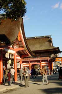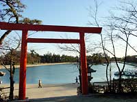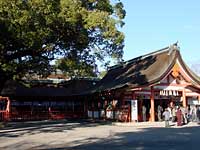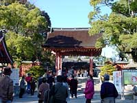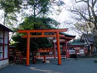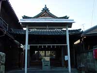 津島神社:御祭神 建速須佐之男命(たけはやすさのおのみこと)御相殿 大穴牟遅命(おおなむちのみこと)(大国主命) 社伝によるに、須佐之男命韓国に渡りましける時、その荒御魂は尚出雲國に鎮まりまして日御崎の神となり給ひ、又和御魂は孝霊天皇の45年乙卯(前245)に一旦西海の對馬州に鎮まりまし、欽明天皇の元年庚申(540)この地藤浪の里馬津港居森の地神島の南に移らせ給ひ、聖武天皇の天平元年己巳(757)神託によりて北方柏森に移し奉り、嵯峨天皇の弘仁九年庚寅(801)今の地に移り給ふたとある。