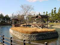 [車河戸]木曾川の支流である天王川は古くから水上の交通路として利用されました。ここは、その天王川の入江になった所で、木材などの荷の積み降ろし場でした。今は、尾張津島天王まつりの津島車の屋台島があり、ここで車楽の準備が行われます。 |
