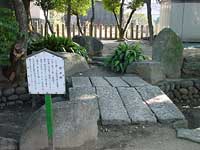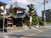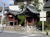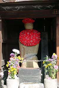 曲水宴を100m程北に進んだ左手角に、約90cmの地蔵尊が祠の中に安置されている。郷士一之曾五左衛門という者の邪剣に殺されかかったある女性の身代わりになったと伝えられ、胴が右上から左下にかけて、斜目に二分されている。 |