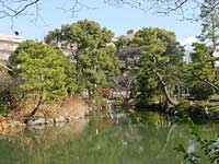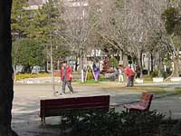 広大な敷地に落ち着いた日本庭園が保存されており、グラウンドではお年寄りのゲームが白熱していた。 |