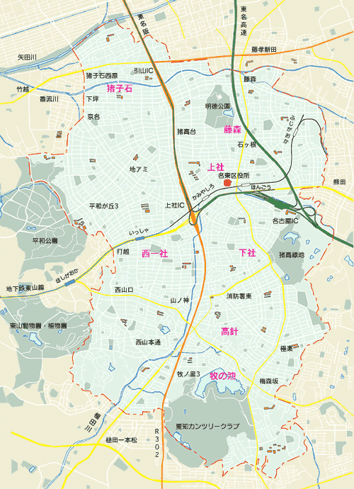 矢田川の上流、香流川に開けた地域で、高針とは文化の成り立ちが異なる。