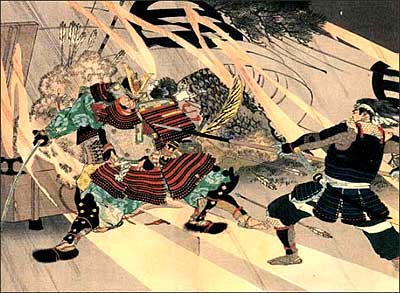 やがて空が晴れてきた。信長公は槍を天に突き出し、大音声で「すわ、かかれえっ」と最後の下知を下した。全軍は義元本陣めがけ黒い玉となって駆け出した。 |