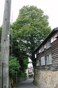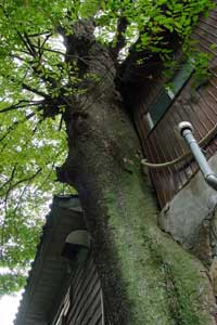 万福寺のクロガネモチ:建物を取り込み成長をしている。
