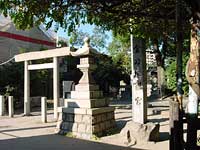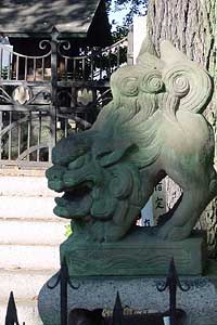 祭神は素盞鳴命。昭和13年、海の守護神と称される素盞鳴命を勧請した。毎年5月13日に行われる神御衣奉献行列は、熱田神宮の神さまの春夏の衣替えの儀式「御衣祭」にともなうもので、衣をつくる絹と麻を熱田神宮に奉献する行事である。現在では、伊勢神宮と熱田神宮だけにこの古儀が残っている。併祀の出雲社の狛犬が魅力的でした。