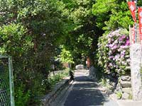 源頼朝の生誕地、産湯に使った亀井水。周辺里道とユーモラスなさわやか地蔵