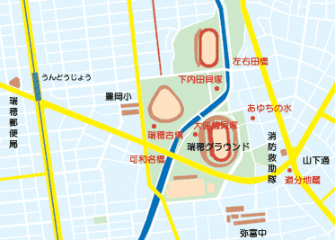 瑞穂古墳群と同時期の遺跡で、当時のサブグラウンドあたりは池になっており、かなりの数の集落があり、生活しやすい環境にあったと思われる。 |