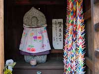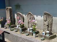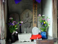 区画整理のあおりで、里道にあったお地蔵様が付近の寺に集められ供養された。