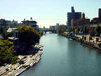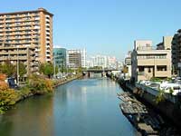 柳川・須佐男神社と堀川の住吉橋:橋の東には住吉神社がある。