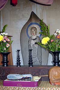 小栗橋を西に渡った角にある地蔵堂。なんとも可愛らしいお顔のお地蔵様でした。近所のおばさんが毎日お花をあげている。