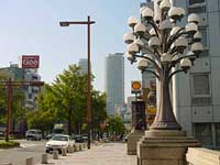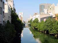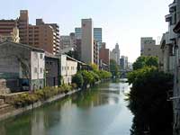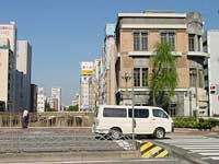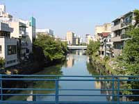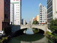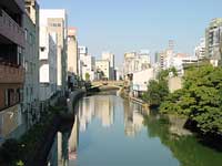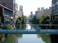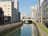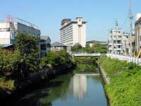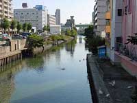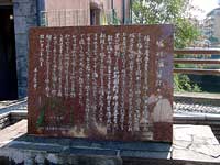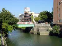 「堀川は慶長15年(1611)城下と熱田の浜を結ぶ輸送路として福島正則により開削されたと伝えられている。当時は名古屋城近くのこの地で堀留になっていたが天明4年(1784)に行われた大幸川の付け替え、明治7年(1877)の黒川冶愿による黒川の開削、更に昭和初期の改修を経て現在の姿になった。朝日橋は天明5年(1785)に初めて架橋され昭和初期まで橋の下には苔むした石積みの段差工があった。その水音から『ザーザー橋』と呼ばれたり、お堀の水の落し口近くにあったことから『辰の口橋』、あるいは橋の上を歩いたときの音から『ドンドン橋』と呼ばれ、人々に親しまれていた。 |