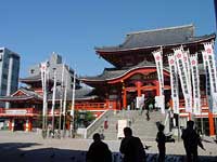 真言宗智山派の寺院。もと美濃の大須にあったのを家康の命により洪水のないこの地に移したといわれる。その後明治の大火、戦災と焼失し現在の大須観音となり、仁王門、大須文庫、鐘楼などがあり、国宝四点と40点近い国の重要文化財があります。毎年2月の節分会には大勢の参拝客で賑わいます。右下は境内にある郷土芸能大正琴発祥の地の記念碑です |