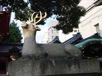 この地には珍しい鹿の狛犬さん。朱塗りの本殿も美しいです。