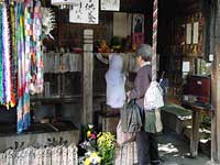 曹洞宗の寺院。境内の石地蔵に濡らした紙を張り祈ると、地蔵が病苦を受けてくれるという地蔵信仰で知られる。