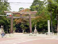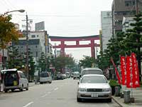 | 大鳥居:豊国神社一の鳥居として昭和四年の建立、高さ24mの日本一の大鳥居は中村区のランドマークです。 |