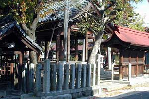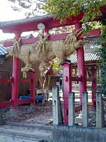 大注連縄で結界された境内には熱田の尾張氏系のほか十神が祀られている。 |