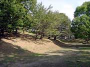 八幡山古墳:県下最大の円墳。高さ10m、直径82m、周りは掘りになっている。