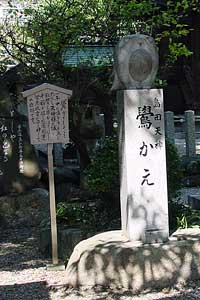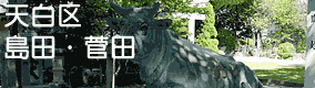 | 島田神社:室町幕府成立のころ、尾張、遠江、越前の三国の守護であり、また管領家であった斯波高経(しばたかつね)が貞治年間に守護神として祭祀した。ユーモラスなウソの像がほほえましい。 |